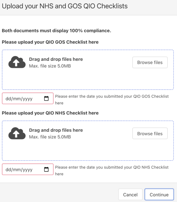 These submissions will be uploaded by subcontractor optical practices to provide assurance to Primary Eyecare Services. These will continue to be refreshed every 3 years: