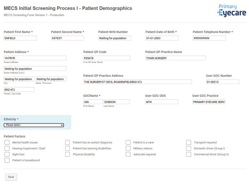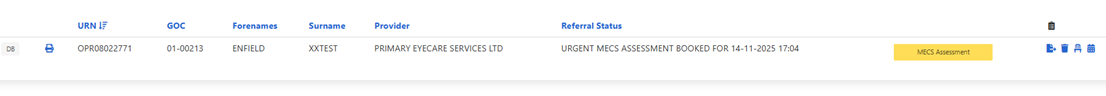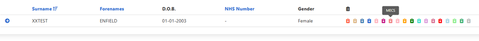Having found the patient on the database, you will have the ability to select the MECS, adjacent to the patient’s name.