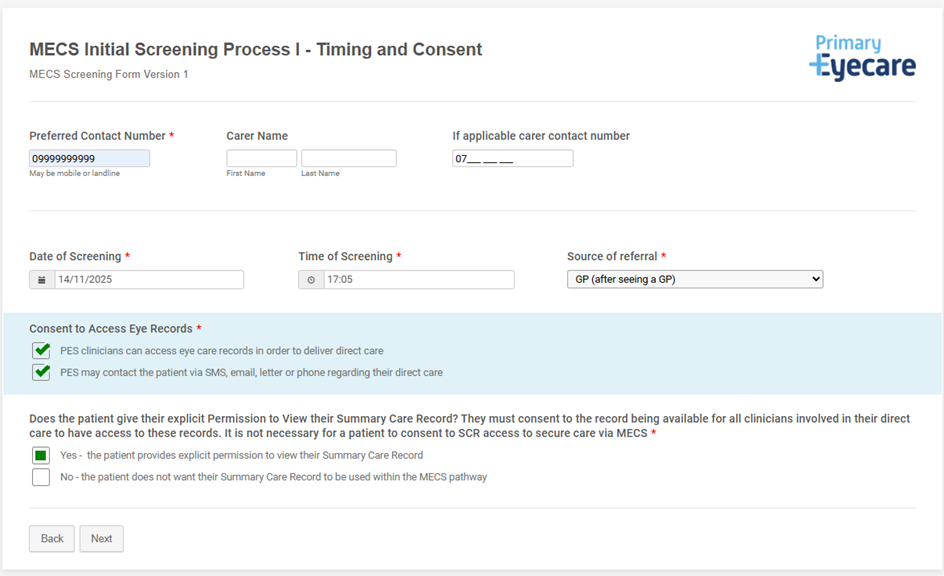 Following this, complete the source of referral and ask for the patient’s explicit consent to view their summary care record