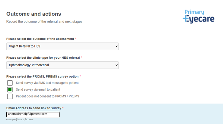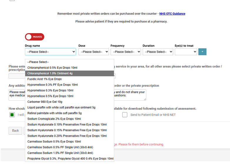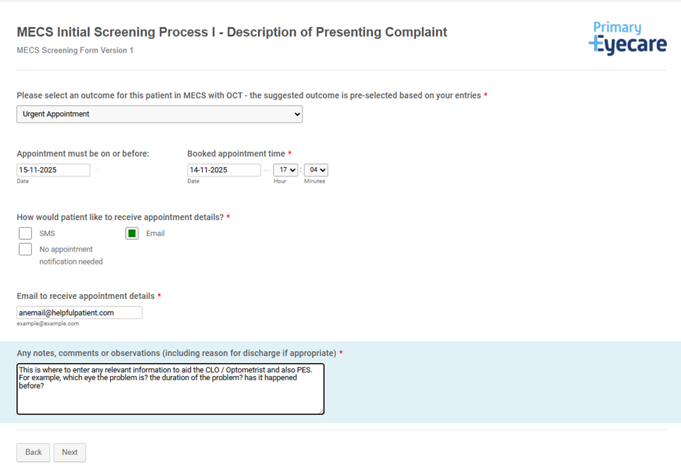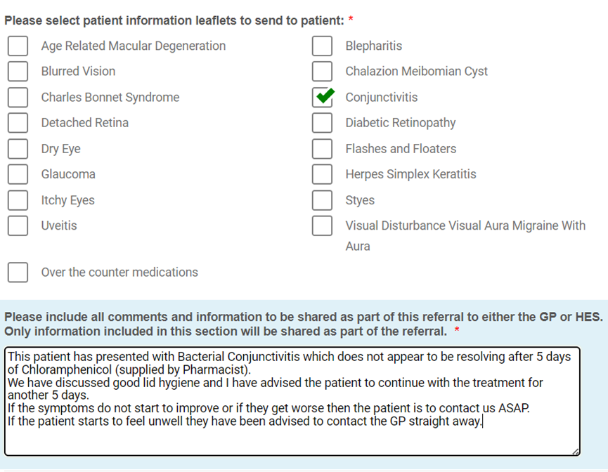 Using the Any notes comments or observation box please include which eye the problem relates to, duration of symptoms and any previous ocular history