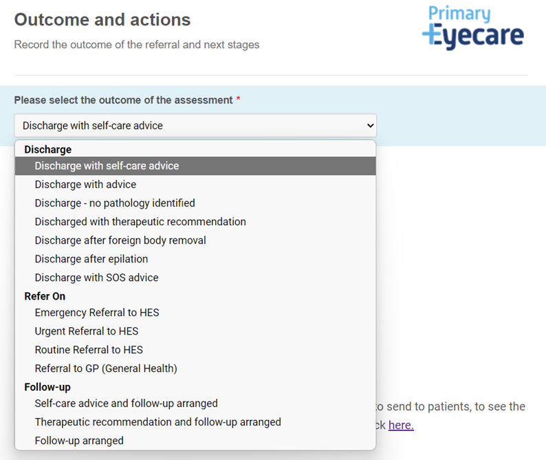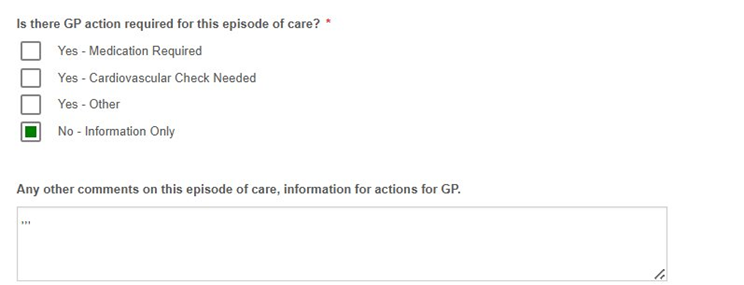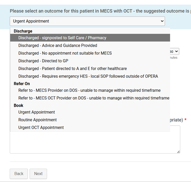 Select the most appropriate outcome from the drop-down list. In all cases, GPs will receive a notification of the outcome of the MECS episode.