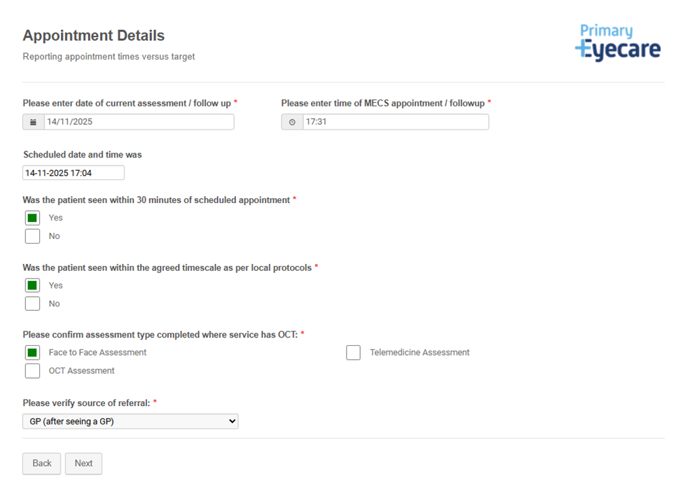 If a MECS service includes the use of OCT imaging the images MUST be added to the referral at this point.