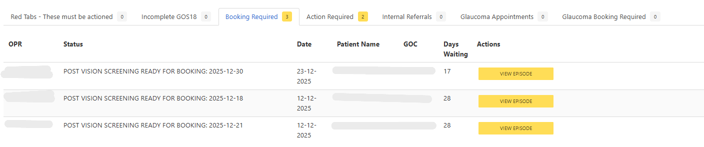 - Once the parent/guardian has chosen, the optometry practice will receive an OPERA notification in ‘booking required’, informing the practice that a patient is waiting to have their first appointment booked.